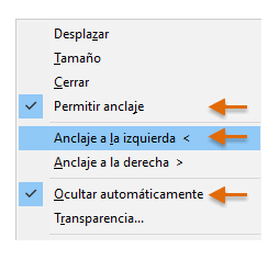 Observe que se puede ajustar la anchura de una paleta cuando se muestra.