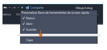 Al minimizar la cinta de opciones, ya no es tan cómodo acceder a las herramientas disponibles en el grupo Capas. Sin embargo, puede añadir la lista desplegable de capas a la barra de herramientas de acceso rápido.