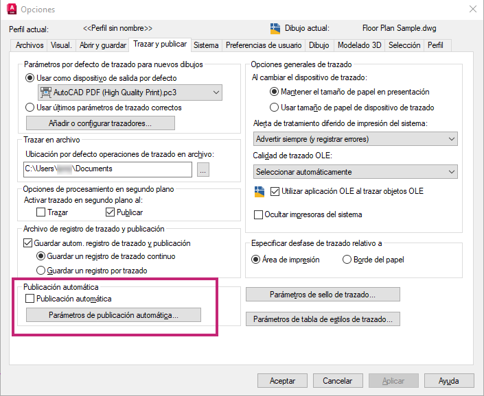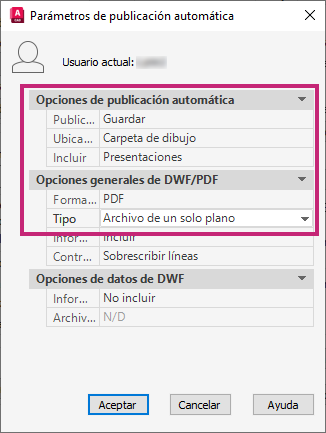 Nota: Los archivos PDF, DWF o DWFx publicados automáticamente sobrescriben de forma automática las versiones existentes con el mismo nombre.