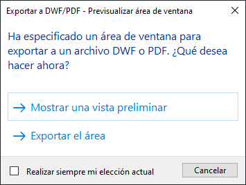 En el cuadro de mensaje Exportar a DWF/PDF - Previsualizar área de ventana, haga clic en Mostrar una vista preliminar.