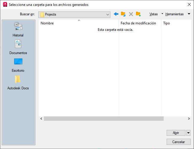 Ubicación: permite establecer la carpeta en la que se guardan los archivos exportados al publicar dibujos. Existen tres opciones: en la misma carpeta que el dibujo, en una subcarpeta de la carpeta del dibujo y en la carpeta que seleccione. Una vez seleccionada una carpeta, se recuerda en una lista de ubicaciones recientes.