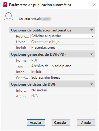 Si desea controlar si se crea un archivo PDF o DWF, puede establecer el parámetro Publicar en en Solicitar al guardar o Solicitar al cerrar.