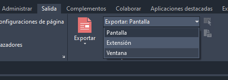Nota: En el espacio modelo, hay tres opciones de exportación que se pueden seleccionar: objetos mostrados actualmente, extensión del dibujo o un área seleccionada.