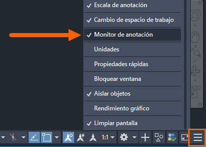 Si no ve el botón Monitor de anotación de la barra de estado, haga clic en Personalización