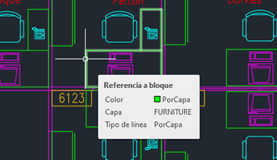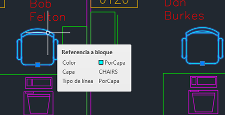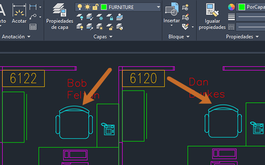 Supongamos que desea cambiar estas sillas de la capa CHAIR a la capa FURNITURE mediante Cambiar a capa actual.