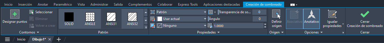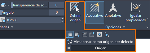 Al aplicar o editar un sombreado, es posible que desee asignar propiedades como el ángulo, la escala, el origen, etc.