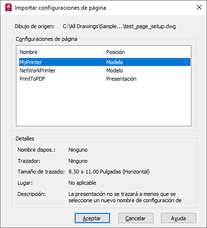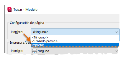Nota: Puede reducir el número de veces que necesita importar configuraciones de página. Para ello, añada las configuraciones de página guardadas a los archivos de plantilla de dibujo. A continuación, estas estarán disponibles automáticamente en todos los dibujos nuevos basados en esas plantillas.