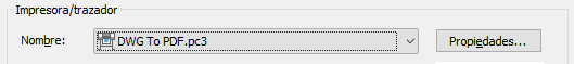 En el cuadro de diálogo Trazar, seleccione los parámetros que desee guardar. Por ejemplo, para el nombre de Impresora/trazador, desplácese por la lista desplegable y haga clic en DWG To PDF.pc3.