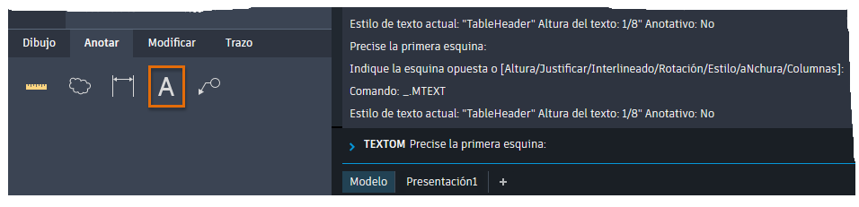 Haga clic en una herramienta de la cinta de opciones y siga las indicaciones que se muestran en la ventana de línea de comando.
