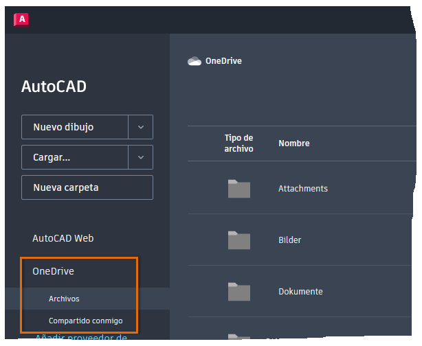 Añadir un proveedor de almacenamiento en la nube a la aplicación web de AutoCAD
