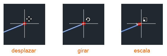 Nota: Los distintivos de cursor indican cuándo se encuentra en los modos de pinzamiento de desplazamiento, rotación o escala, pero no de estiramiento o simetría.