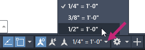 La escala anterior de la ventana gráfica se restaura junto con la visibilidad de los objetos anotativos con una escala de anotación de 1/2"=1'-0".