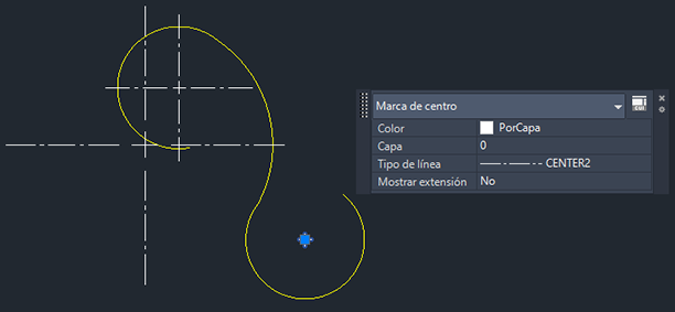 Nota: Si selecciona una marca de centro y no se muestra la paleta Propiedades rápidas, compruebe que la variable de sistema QPMODE se haya establecido en 1.