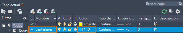 Cuando se crea una línea o una marca de centro, se coloca en la capa de líneas de centro, independientemente de la capa actual.
