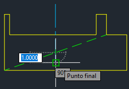 Para modificar esto, seleccionaremos la línea de centro y utilizaremos el pinzamiento de longitud para arrastrar la línea de centro más allá de la arista de la geometría.