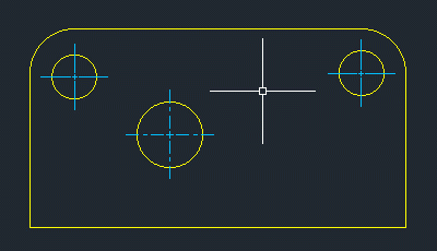 Vamos a establecer la capa para las marcas y las líneas de centro mediante la variable de sistema CENTERLAYER. Hasta ahora, todas las líneas y las marcas de centro se han creado con la capa y las propiedades actuales, en este caso, la capa 0.