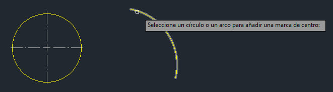 MARCACENTRO Crea una marca en cruz asociativa en el centro de un círculo o un arco seleccionados.