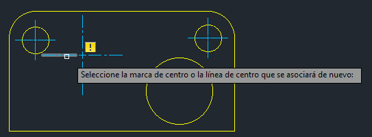 Si se disocia una marca o una línea de centro de su geometría, dispone de un par de opciones. Puede suprimir la marca o la línea de centro si ya no es necesaria, o bien puede volver a asociarla a la geometría del dibujo.