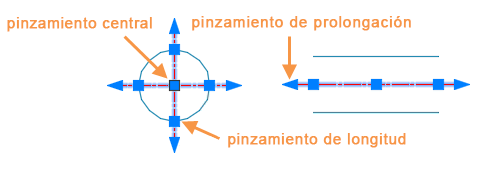 Explicaremos cómo utilizar pinzamientos para modificar las marcas y líneas de centro más adelante en este artículo: Edición de marcas y líneas de centro mediante pinzamientos.