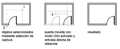 Un ejemplo práctico podría ser desplazar la puerta de una pared. La puerta que muestra la ilustración se encuentra totalmente dentro de una designación de captura, mientras que las líneas de la pared solo están parcialmente dentro del área de designación de captura.