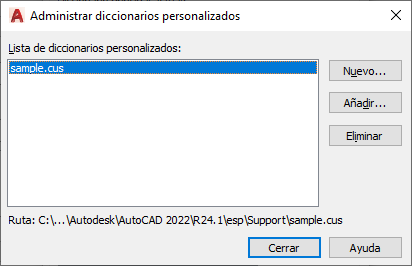 Permite crear un diccionario personalizado. El nuevo diccionario se resalta como diccionario actual.