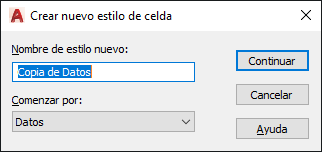 Abre el cuadro de diálogo Nuevo estilo de tabla, que permite definir el nuevo estilo de celda.