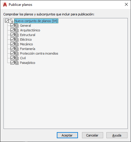 Especifica qué planos se publicarán.