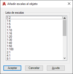 Muestra la lista de escalas que se pueden añadir al objeto anotativo seleccionado.