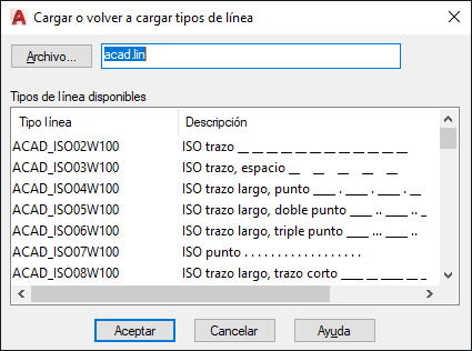 Carga un tipo de línea cuya definición existe en un archivo de biblioteca de tipos de línea (LIN).