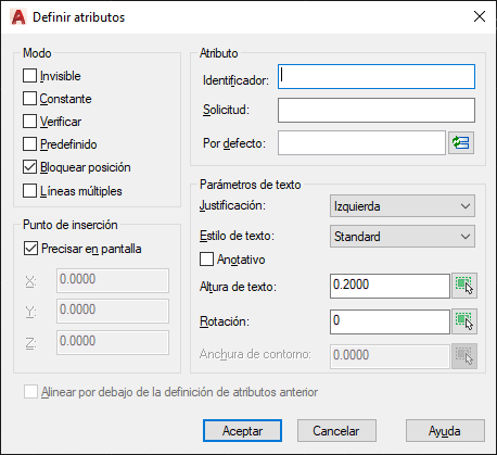 Asigna un valor fijo a los atributos al insertar el bloque. Este parámetro se utiliza para la información que nunca cambia.