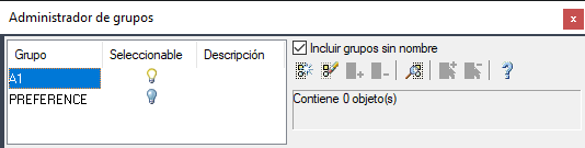 Cuando un grupo no es seleccionable, el icono en forma de bombilla no está disponible y al seleccionar un único miembro del grupo se selecciona sólo ese objeto. Cuando la variable de sistema PICKSTYLE se establece en 0, ningún grupo es seleccionable.
