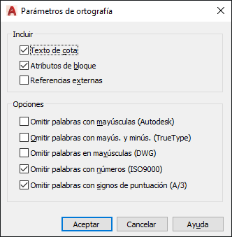 Precisa las opciones de texto específicas que se comprueban en el dibujo.