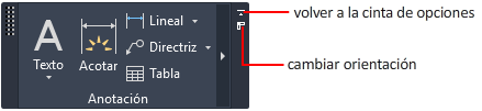 Puede retirar un grupo de una cinta de opciones e incluirlo en el área de dibujo o en otro monitor. El panel flotante permanece abierto hasta que lo devuelve a la cinta de opciones, aunque cambie de una ficha de la cinta de opciones a otra.