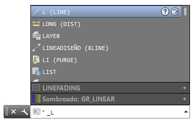 Por ejemplo, en lugar de mover el cursor del ratón a la cinta de opciones para iniciar el comando LINEA y de volver al área de dibujo para dibujar una línea, puede escribir L en la solicitud de comando para iniciar el comando sin necesidad de salir del área de dibujo o cambiar de ficha de la cinta de opciones.