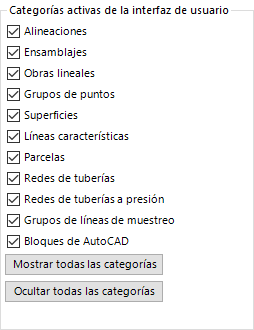 Categorías activas de la interfaz de usuario