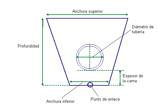 | Espesor de la cama | Profundidad de la cama de tubería sobre la parte inferior de la zanja | Numérico, positivo |
