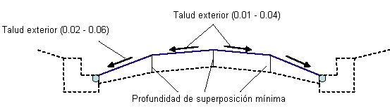 Si los vínculos de superposición son demasiado poco profundos, la profundidad de la superposición se incrementa para alcanzar los taludes mínimos. Si esto da como resultado una diferencia máxima de pendiente excesiva, pueden producirse nuevos ajustes y operaciones de fresado. El siguiente diagrama explica el caso de superposición con fresado: