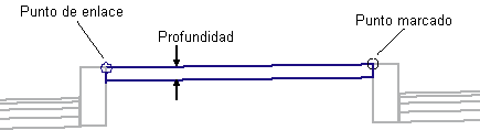 La parte superior del vínculo de la mediana se inserta entre el punto de enlace y el punto marcado. Si se especifica una profundidad distinta de cero, la parte inferior del vínculo de la mediana se inserta paralela a la parte superior y se añaden vínculos verticales para cerrar la forma.