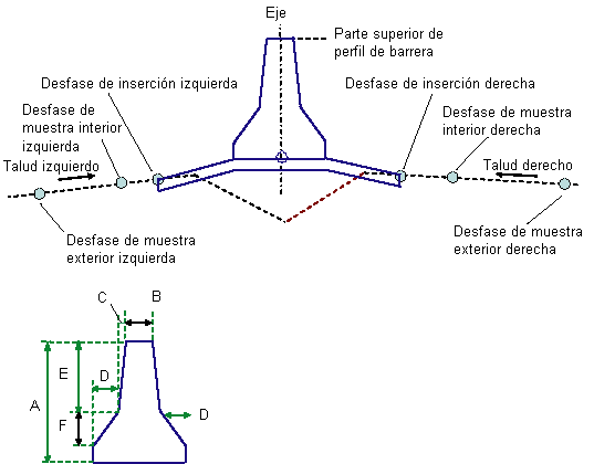 Altura de la barrera desde la base del borde alto de la mediana hasta la parte superior de la barrera. |