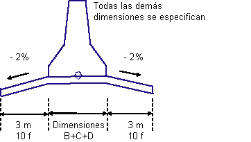 Nota: todas las dimensiones se ofrecen en metros o en pies a menos que se indique lo contrario. Todos los taludes se expresan como recorrido por altura (por ejemplo, 4:1), a menos que se indiquen como un porcentaje de talud mediante el signo “%”.