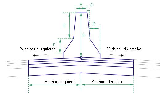 | Orientación de talud de arcén | Especifica si el talud se encuentra fuera del bombeo o hacia el bombeo. |