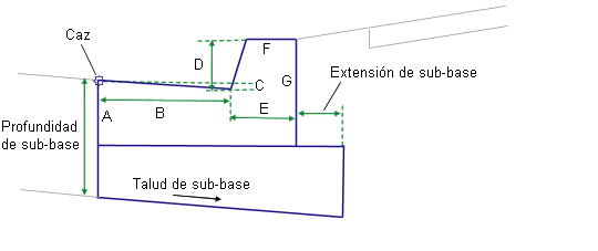 Nota: las dimensiones de la sub-base se expresan en metros o en pies. Las dimensiones del bordillo y el caz se deben especificar en milímetros o en pulgadas.