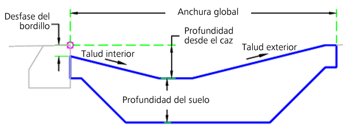 | Desfase del bordillo | Desfase desde el punto de enlace | Numérico |