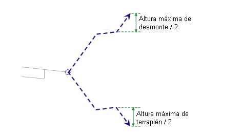 El punto de enlace se encuentra en el borde interior del talud en desmonte o terraplén inicial. Este componente se puede enlazar al lado izquierdo o al derecho.