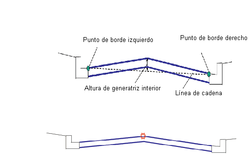 La elevación del punto de bombeo es la suma de la elevación media de los bordes izquierdo y derecho y el valor del parámetro altura de bombeo.