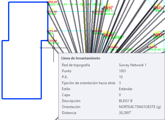 Survey Network 1 para mostrar las colecciones de datos de levantamiento, incluidos puntos de control, orientaciones y estaciones.