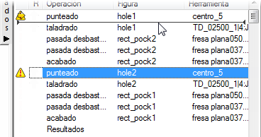 - Seleccione la operación de punteado del agujero2 de la lista y arrástrela a la operación de taladrado del agujero1.