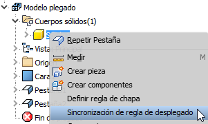 - Haga clic con el botón derecho del ratón en un cuerpo de chapa en el navegador y seleccione Sincronización de regla de desplegado.