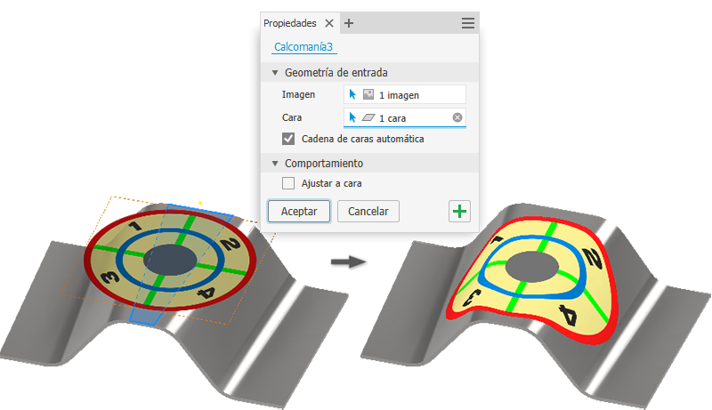 Para obtener más información sobre las calcomanías, consulte Procedimiento para repujar o añadir calcomanías a piezas o superficies