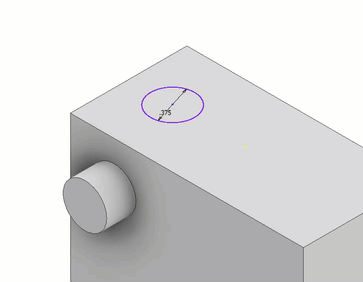 La opción Permitir creación de centro está desactivada y oculta cuando la Geometría de entrada es un punto de trabajo. Para obtener más información sobre el comando Agujero, consulte Procedimiento para crear agujeros.